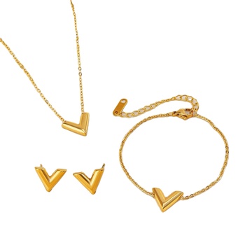 사용자 정의 하이 퀄리티 패션 스테인레스 스틸 보석 제조 업체 V 문자 목걸이와 귀걸이 팔찌 3 개 세트